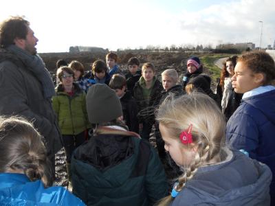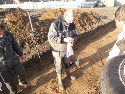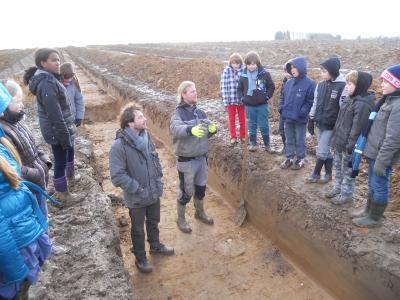 Ons thema "Graven om te weten" is uitgedraaid op een leuke kennismaking met archeoloog Tim Vanderbeken. Hij is verantwoordelijke van ZOLAD+( Zuid-Oost-Limburgse Archeologische Dienst). Toen ik hem contacteerde was hij erg enthousiast over hetgeen we aan het doen waren. We hebben samen met hem de site bezocht op Spelver en achteraf is hij nog een namiddag in de klas komen vertellen over archeologie en had daarbij een kist vol vondsten bij.