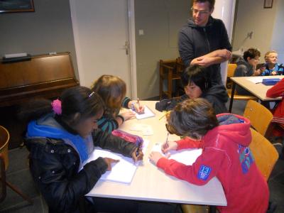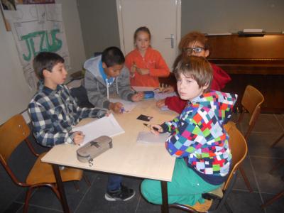 In groepsverband werd er, door middel van een spel, gewerkt aan een gedicht.
