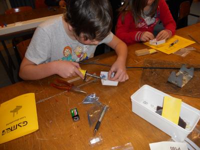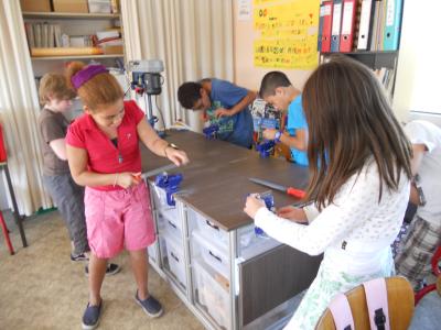 De techniekmobiel is een verplaatsbare, vrij grote werkbank waaraan de kinderen kunnen experimenteren met techniek.