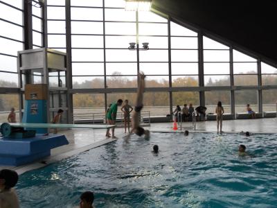 Het zwemprogramma was binnen,we hebben daar kunnen duiken, we zijn er ook van de glijbaan geweest en je kon ook veel spelletjes met de bal in het water doen. Het was super leuk!!