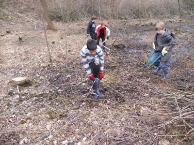 Alle leerlingen, waren voorzien van werkhandschoenen, laarzen en speelkleren.