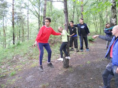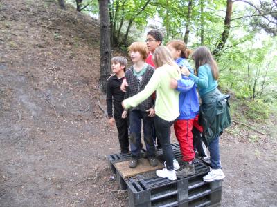 Onze sportdag is letterlijk in het water gevallen. Geen stralende zon, maar een druilerige dag.Geen probleem, aldus de koningspages: hoe vuiler we worden, hoe beter. Het heeft de pret ook niet kunnen deren hoor. Jammer dat het roeien niet door is kunnen gaan vanwege het slechte weer alsook het mountainbiken. Dit laatste was niet mogelijk omdat een gedeelte van het natuurgebied, waar er normaal gezien gemountainbiked wordt, ingepalmd was door ander publiek.