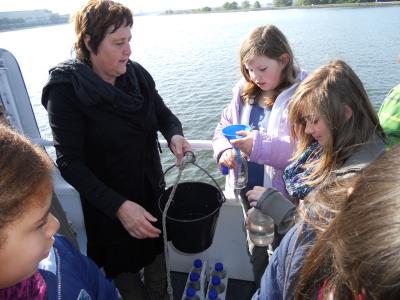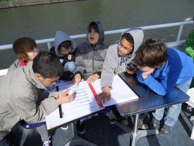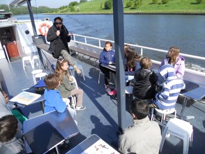 Veel meer dan zomaar wat varen uiteraard! Vanaf het dek bekeken de leerlingen het Albertkanaal vanuit een ander oogpunt. Ze staken heel wat interessante informatie op zoals de verschillende functies van het Albertkanaal, de natuur in de omgeving en het leven op, om en in het water.