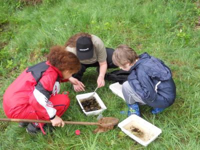 De groep die wateronderzoek deed kreeg een schepnet, potjes en dertermineertabel. Zo gingen de kinderen aan de slag en er werden heel wat kleine (en grotere) waterdiertjes gevonden. Zelfs de kokerjuffer werd gevonden. Dit waterdiertje overleeft enkel in zeer zuiver water. Dat betekent dat de poelen in de Kuil voorzien zijn van zuiver water.