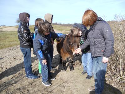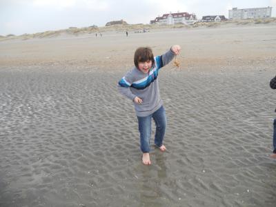 We zijn naar de paardenvissers gegaan en hebben gezien hoe die met zijn paard en net garnalen vist. Bij hem thuis werden ze gekookt en mochten we er zelf pellen en opeten. Ze waren heel lekker. In de namiddag was het zo slecht weer dat we binnen spelletjes gespeeld hebben.
