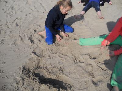 We gingen naar het strand en deden daar een zandkastelenwedstrijd.